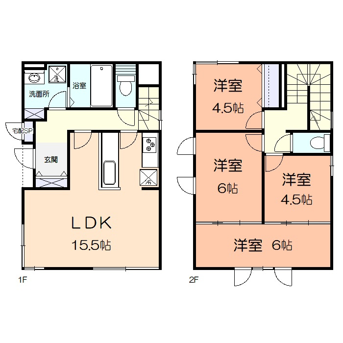 LDK 15.5帖/洋室 6.0帖/洋室 6.0帖/洋室 4.5帖/洋室 4.5帖 - 向き